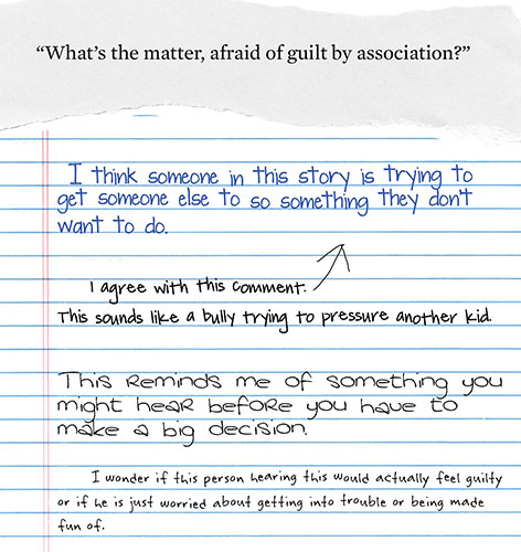 - Remind students to respond to each other's comments (names are optional). Creating this thread makes the transition to group discussion more effective. Depending on class size and the lesson objective, limit the number of quotes students comment on.