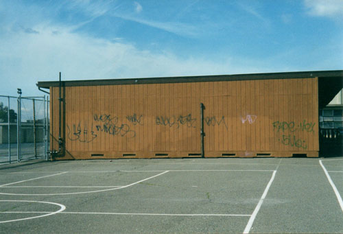 In fact, there were no trees, no play structures, nothing painted on the blacktop and no grass in Oakland. Instead, there were chain-link fences, broken basketball hoops and tetherball poles without tetherballs. It looked like every movie I had ever seen with a prison yard. Each teacher was given one kickball at the beginning of the year. It usually got popped, lost, or kicked onto the roof within the first week of school. Many dedicated teachers bought their own jump ropes, plastic discs and balls. Without these, students had little else to do at recess but chase one another or fight. Some industriously dug holes in the blacktop with plastic spoons.