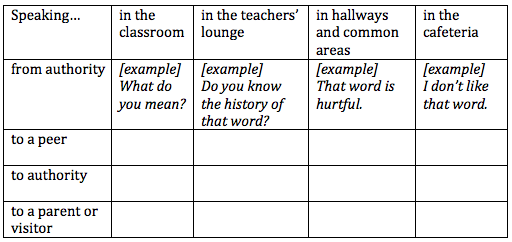 - Name examples of biased language you hear at your school.